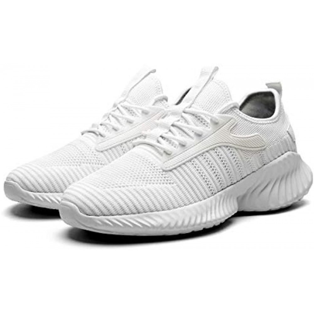 Men's Slip On Walking Shoes Fashion Breathable Sneakers Mesh Soft Sole Casual Athletic Lightweight Running Shoes White